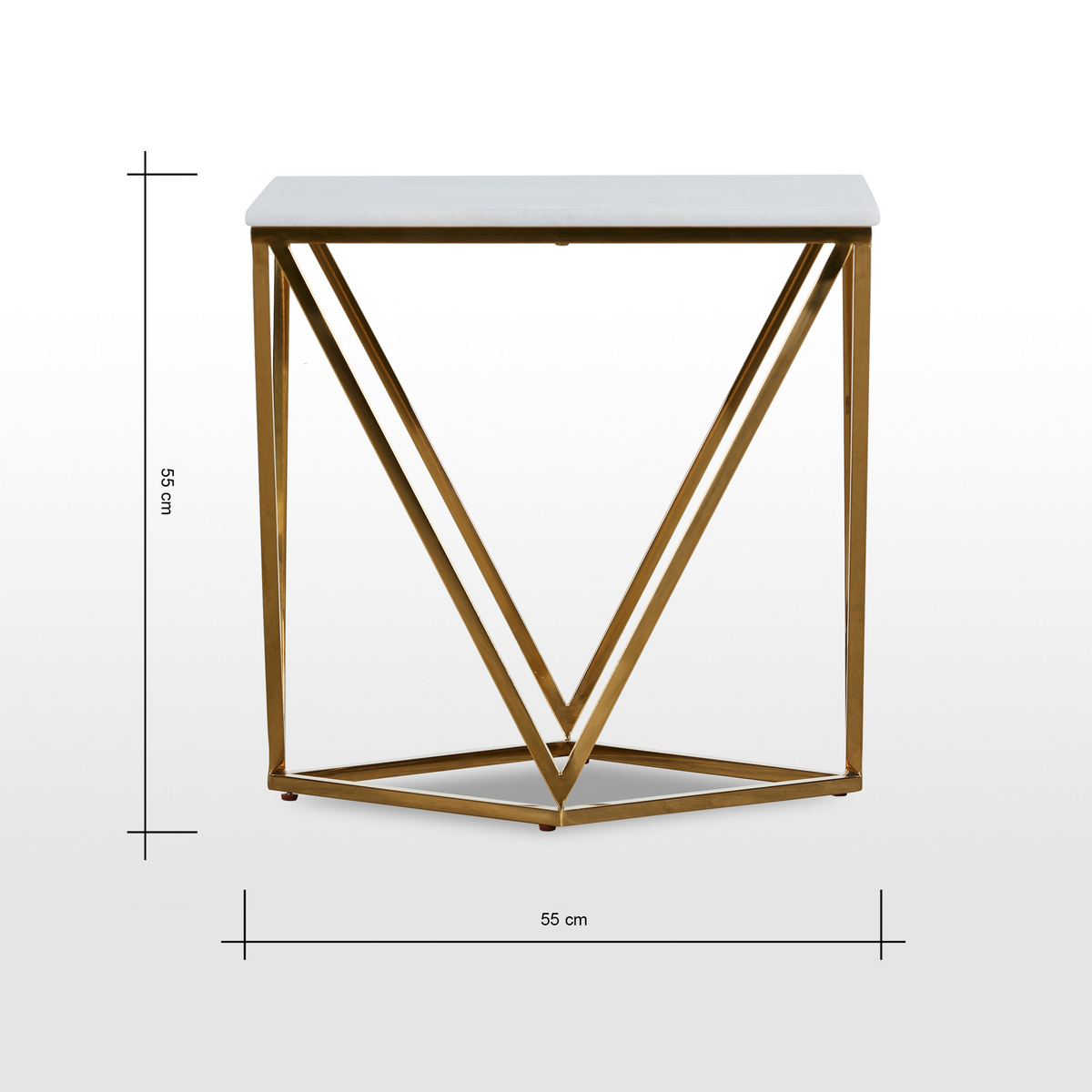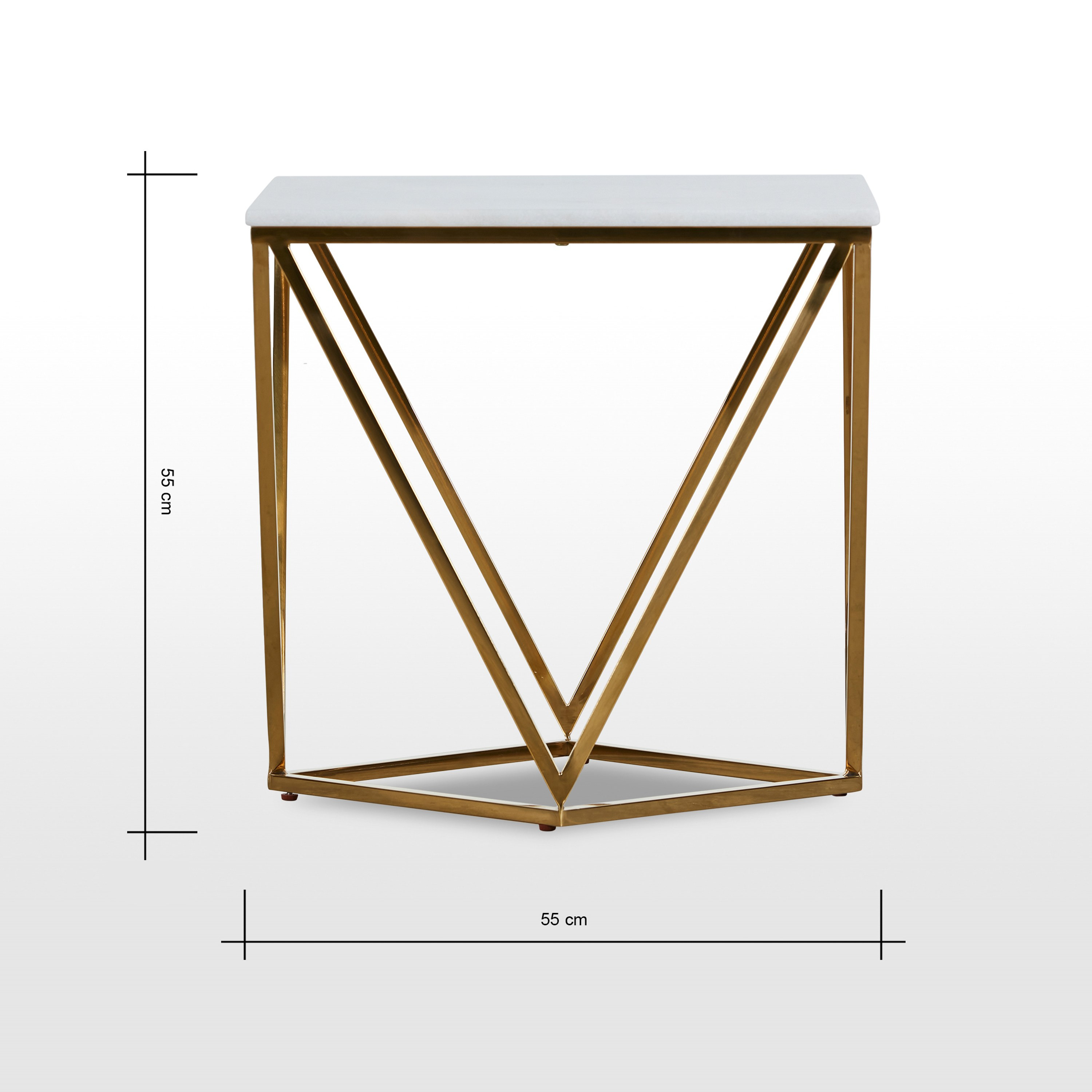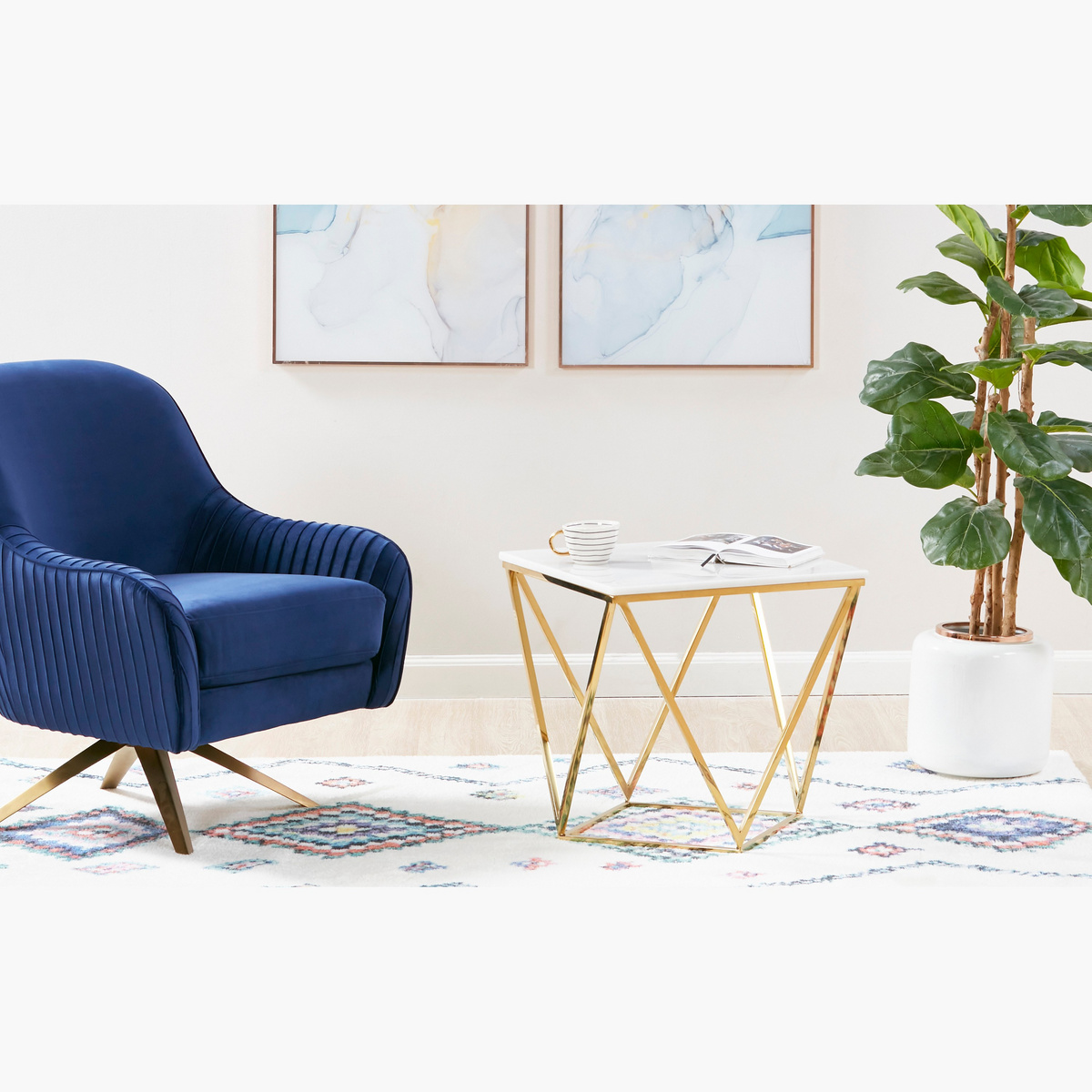 عزّزي من ديكور منزلكِ بإقتنائكِ لهذه الطّاولة الجانبيّة العصريّة. مصممة بلون جميل وراقٍ، مصنوعة من خامات عالية الجودة كما تعرض سطحًا رخامي وقاعدة ميتاليك بارزة تعكس رقي اختياراتكِ.