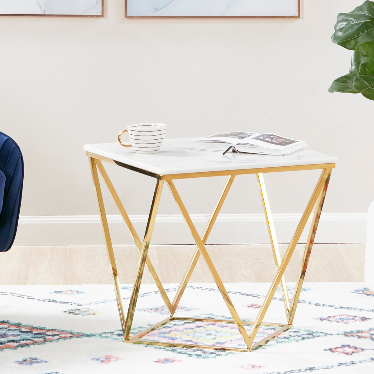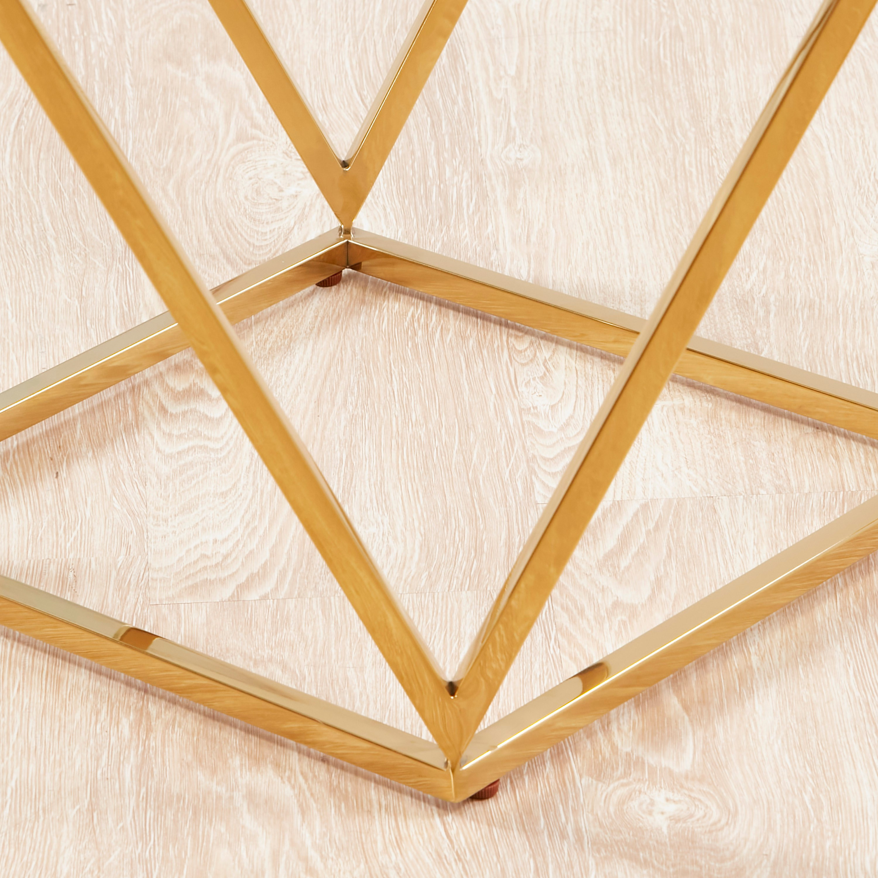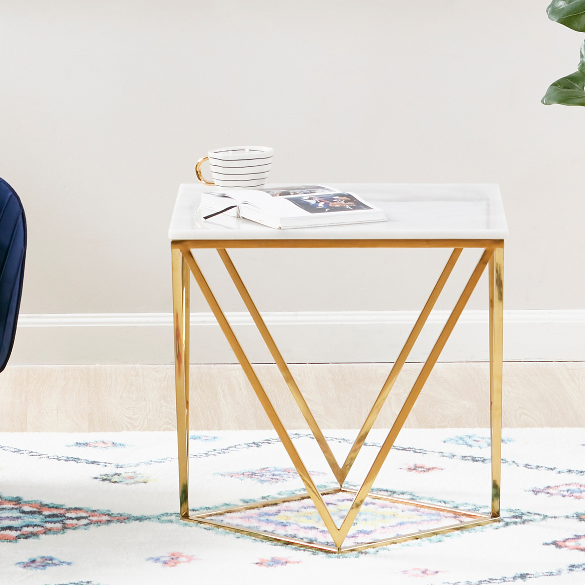 عزّزي من ديكور منزلكِ بإقتنائكِ لهذه الطّاولة الجانبيّة العصريّة. مصممة بلون جميل وراقٍ، مصنوعة من خامات عالية الجودة كما تعرض سطحًا رخامي وقاعدة ميتاليك بارزة تعكس رقي اختياراتكِ.