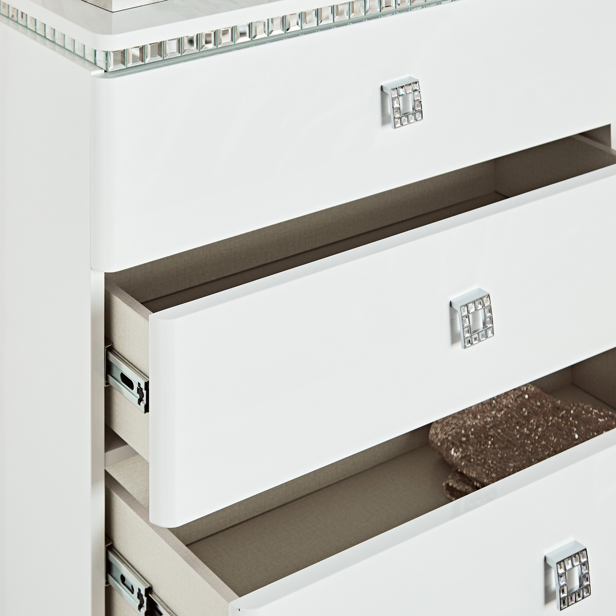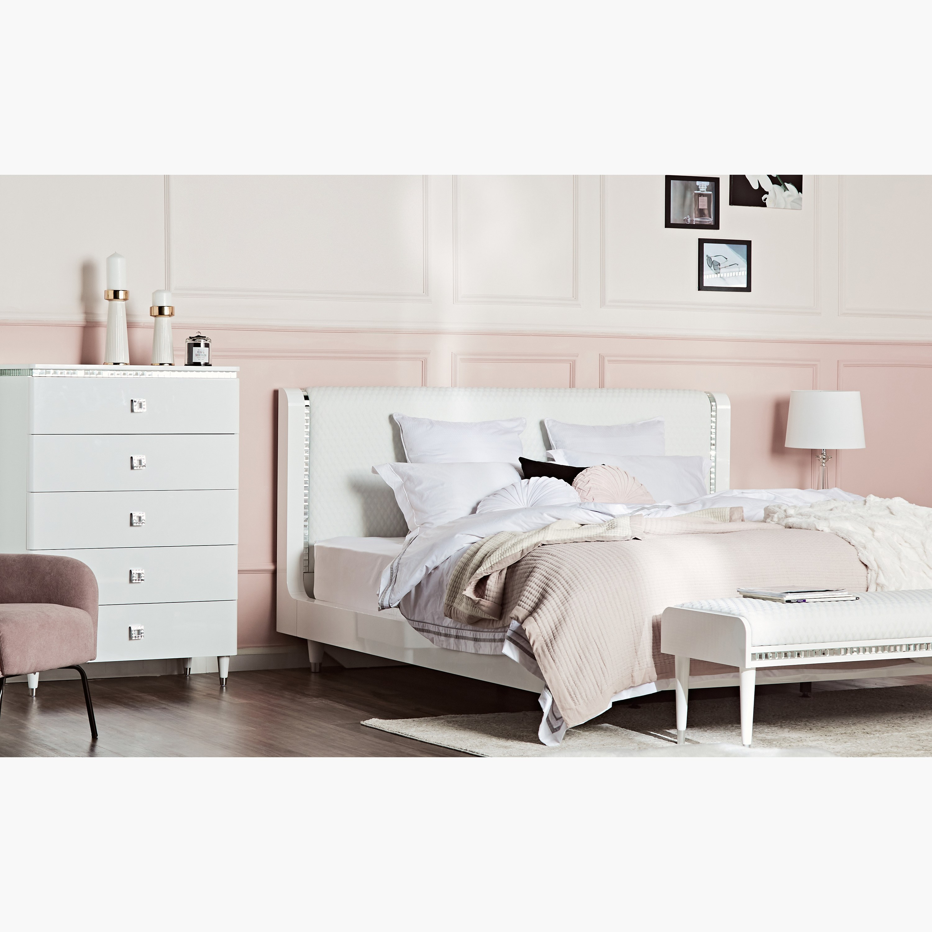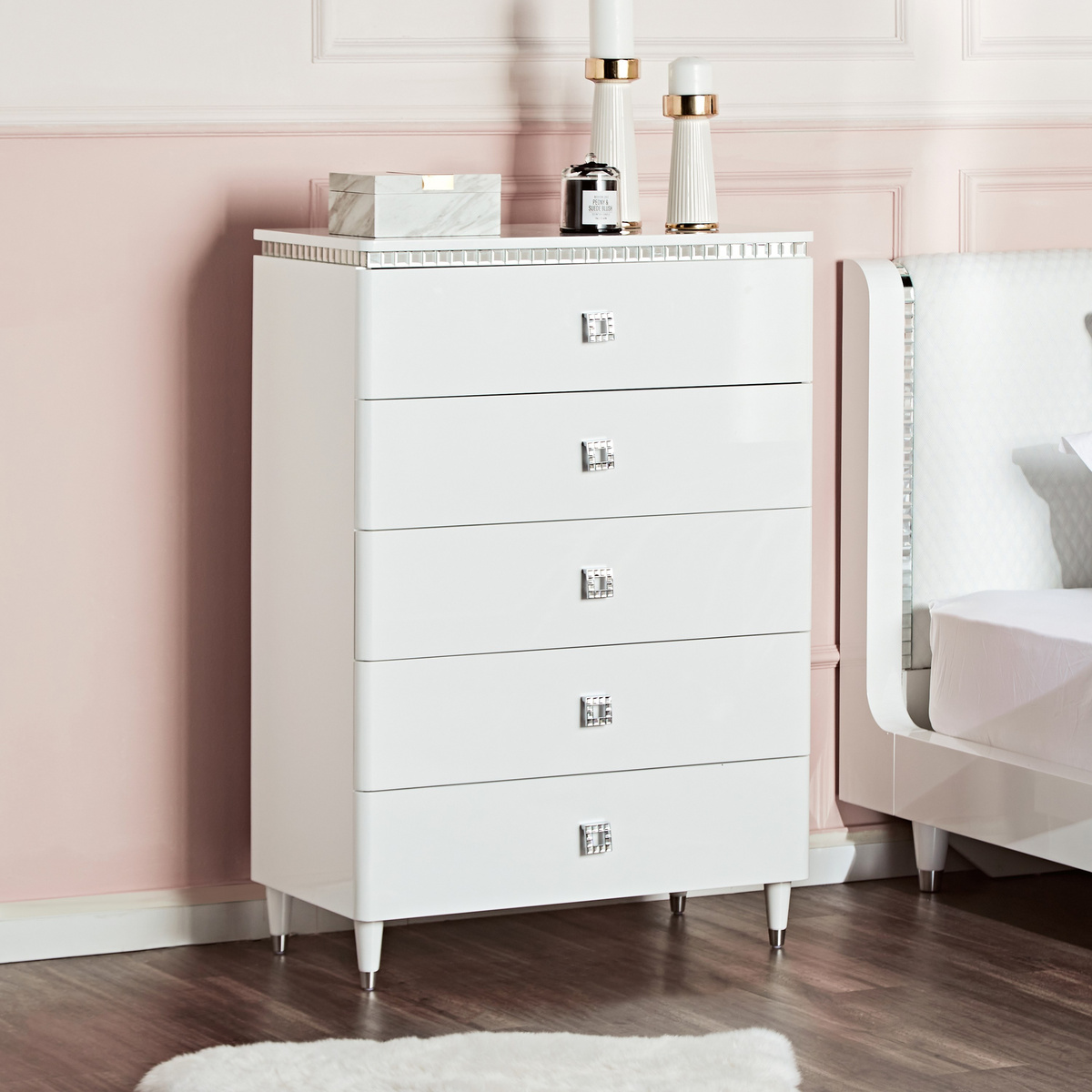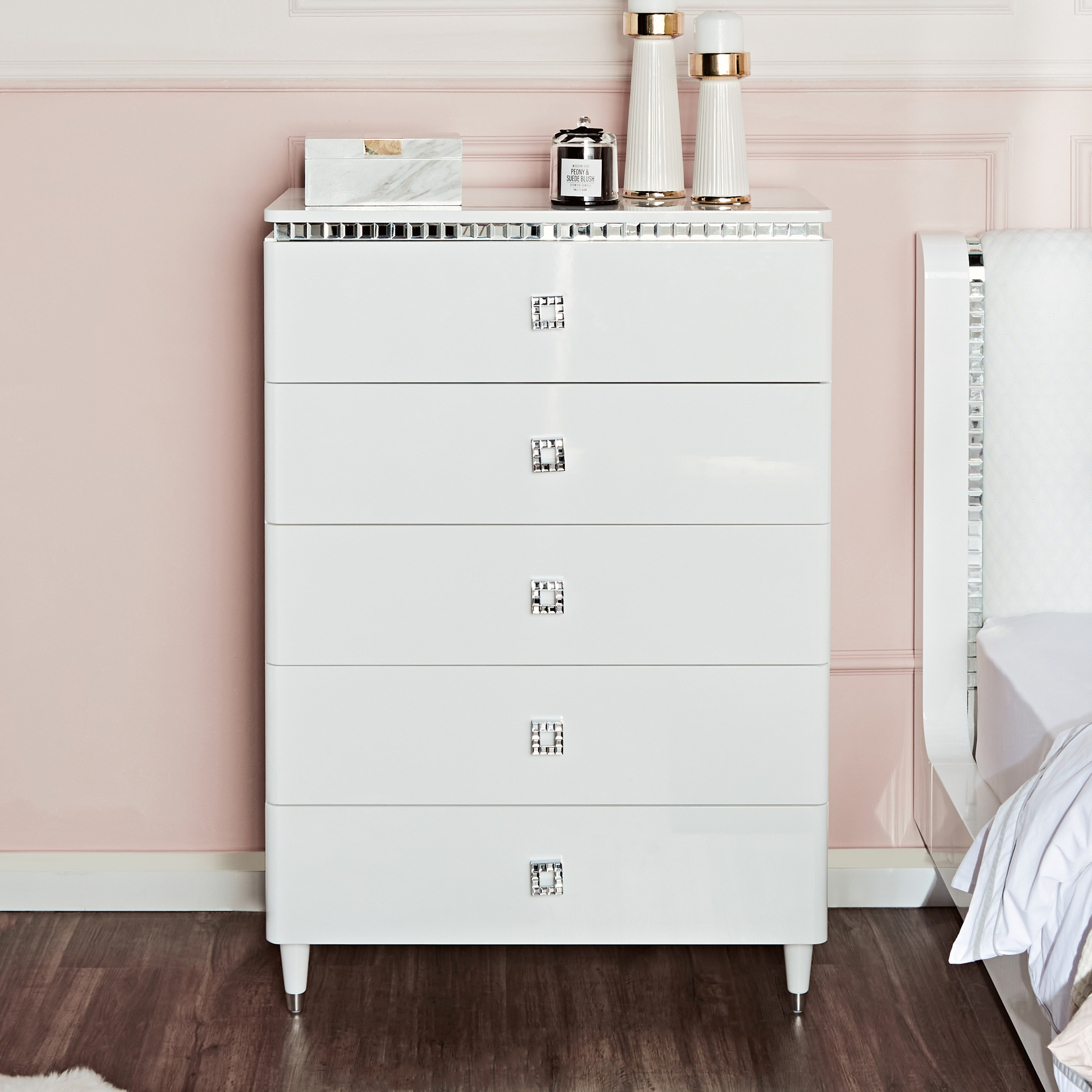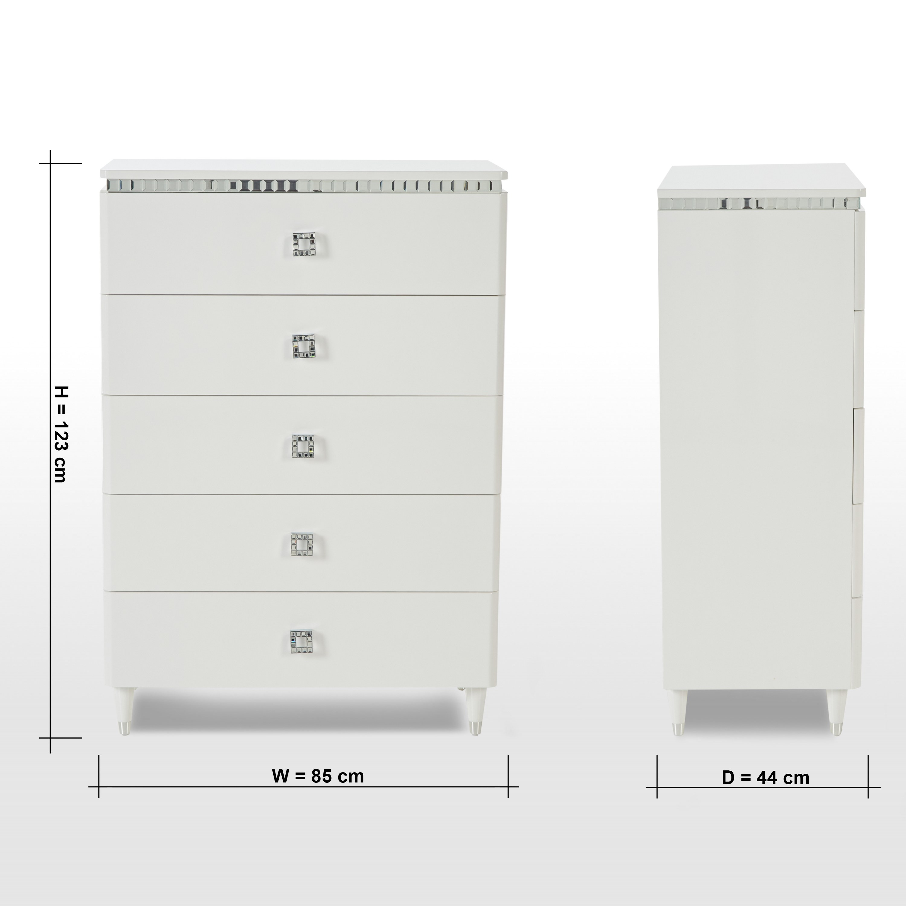 أظهري حبكِ للديكورات الداخلية الحديثة من خلال إحضار هذه الوحدة إلى المنزل. توفر مساحة تخزين كبيرة في هيكلها المكون من خمسة أدراج مع مقابض مزخرفة تزيد من جاذبيتها العامة. كما أنها مصنوعة من الخشب المصمم هندسيًا بلمسة تشطيب شديدة اللمعان، ويمكن تنظيفها بعناية.