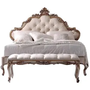 اكتشف روعة غرفة نوم كلاسيكي تجمع بين الفخامة والراحة. مصنوعة من الخشب الهندسي المتين مع لمسات من الستيل المذهب، وتتميز بتصميم عصري وأقمشة فاخرة مبطنة بالأسفنج عالي الكثافة. تضم المجموعة سريرًا فاخرًا، طاولات جانبية، تسريحة أنيقة مع مرآة. مثالية لاضافة لمسة من الأناقة والرقي على غرفة نومك.