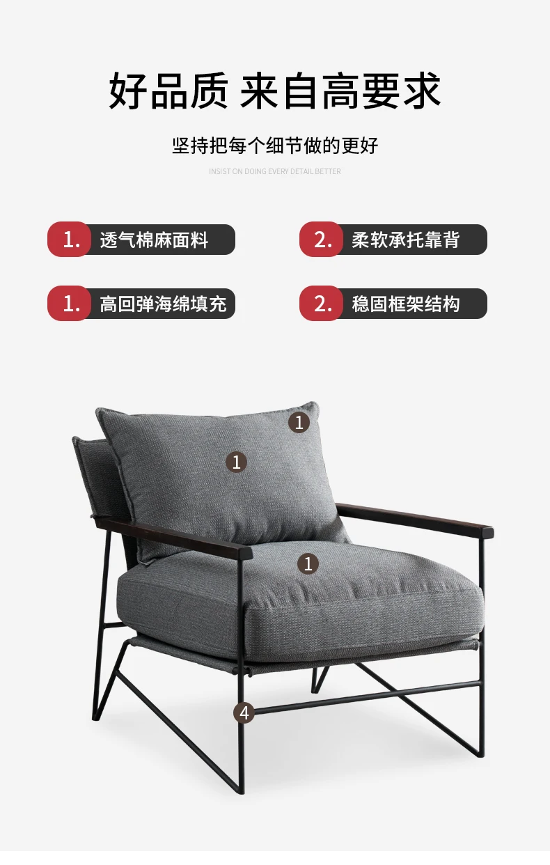 مصنع من معدن قوي عالي الجودة مع مقعد محشو من اسفنج عالي الجودة مغطى من قماش كتان عالي الجودة