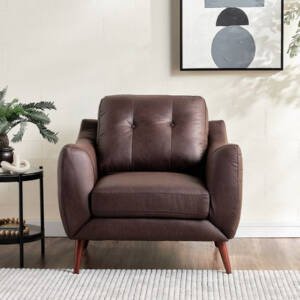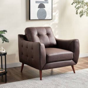 عززي فخامة قطع الأثاث في منزلكِ باقتناء هذا الكرسي الرائع، مصمم بمساند ذراعين وتنجيد قماشي ناعم من الجلد الصناعي وقوائم متينة، ومصنوع من خامات عالية الجودة مع وسادة ظهر لضمان الراحة والاستدامة.