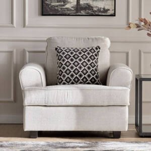 أضفي جلسة فخمة إلى غرفة معيشتكِ بالحصول على هذا الكرسي الرائع. مصمم بذراعين بحشوة ناعمة جنبًا إلى جنب مع تنجيد قماش فخم ومسند ظهر يمنحكِ تجربة جلوس مريحة. إضافة إلى إطار خشبي وأرجل صلبة تعزز من الثبات والمتانة؛ يأتي مع وسادة واحدة لمزيد من الرقي.