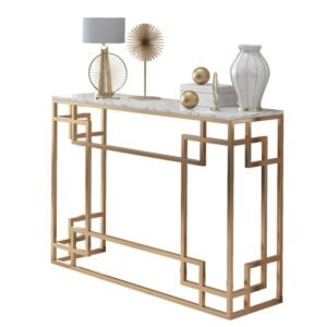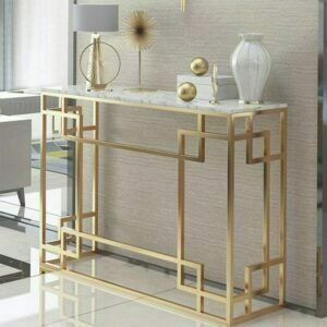 كونسول مودرن 120 سم من الاستيل المذهب والرخام الفاخر الابيض