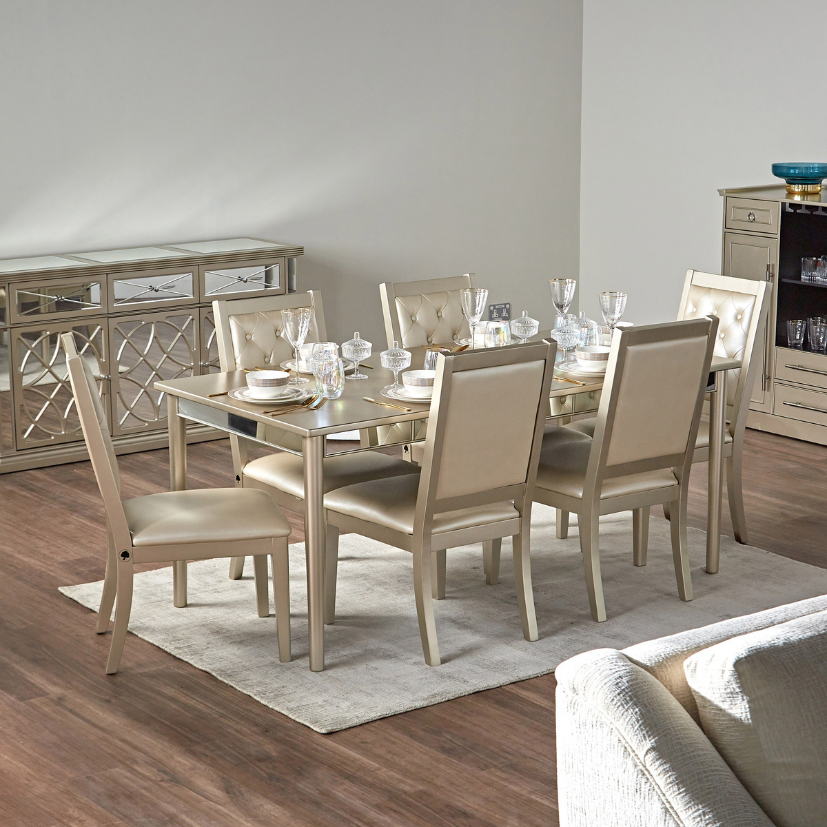 أضيفي طاولة الطعام العصرية هذه إلى مساحتك لترتيب مريح. مصممة لتناسب الديكورات الداخلية الحديثة، ويمكن أن تستوعب ما يصل إلى ستة أشخاص في وقت واحد بسهولة. هذه الطاولة المستطيلة منتهية جيدًا ولها تصميم مضغوط. تزيد الأرجل المدببة من المتانة والثبات. كما تتميز الكراسي المصنوعة من الجلد الصناعي بدون أذرع براحة عالية مع حشو من الإسفنج والألياف.